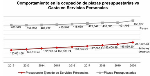 | Plazas presupuestarias | 431,796 | 453,937 | 22,141 | 5.1 |