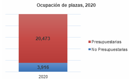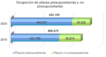 | Plazas no presupuestarias | 36,674 | 30,252 | -6,422 | -17.5 |