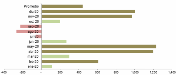 | Tipo de contratación | 2019 | 2020 | Variación absoluta | Variación porcentual |
