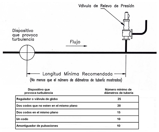 | | | | | | L5.1 El tamaño nominal de toda la tubería, válvulas, accesorios y componentes que van del recipiente a presión hacia su(s) válvula(s) de relevo de presión, ya sea(n) de seguridad, seguridad-alivio u operadas por piloto, deben ser por lo menos del mismo tamaño nominal que el de la entrada del dispositivo de relevo, y las características del flujo, que van del recipiente hacia el dispositivo, deben ser tales que la pérdida total de presión no sea mayor del 3% de la presión de ajuste (véase figura L1). La pérdida de presión a la entrada modificará la capacidad de descarga de la válvula marcada en la placa debido a las características de flujo, además de provocar traqueteo al momento de la operación de la válvula. Nota: El traqueteo produce daños a las partes internas de la válvula y equipos periféricos correlacionados, por lo que es necesario evitar las causas que lo originan, generalmente causados por problemas de instalación, pérdidas de presión excesivas (más del 3% de la presión de ajuste), cambios inadecuados de resorte durante el mantenimiento y/o por el sobredimensionamiento de la válvula. | | |