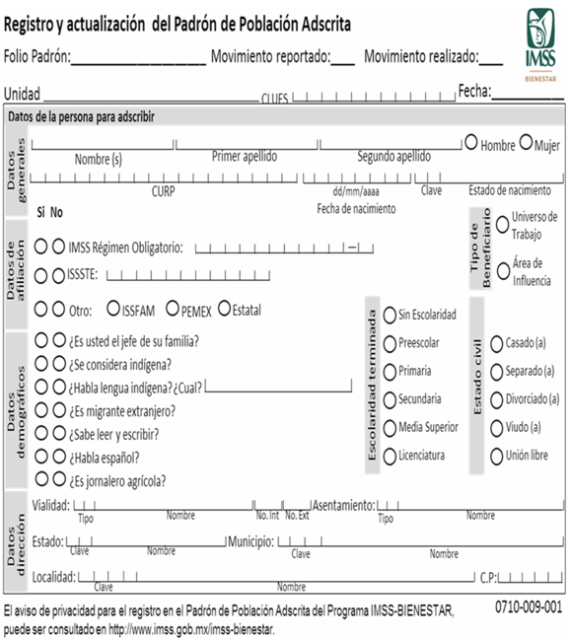 Anexo Único. Formato de Registro y Actualización del Padrón de Población Adscrita