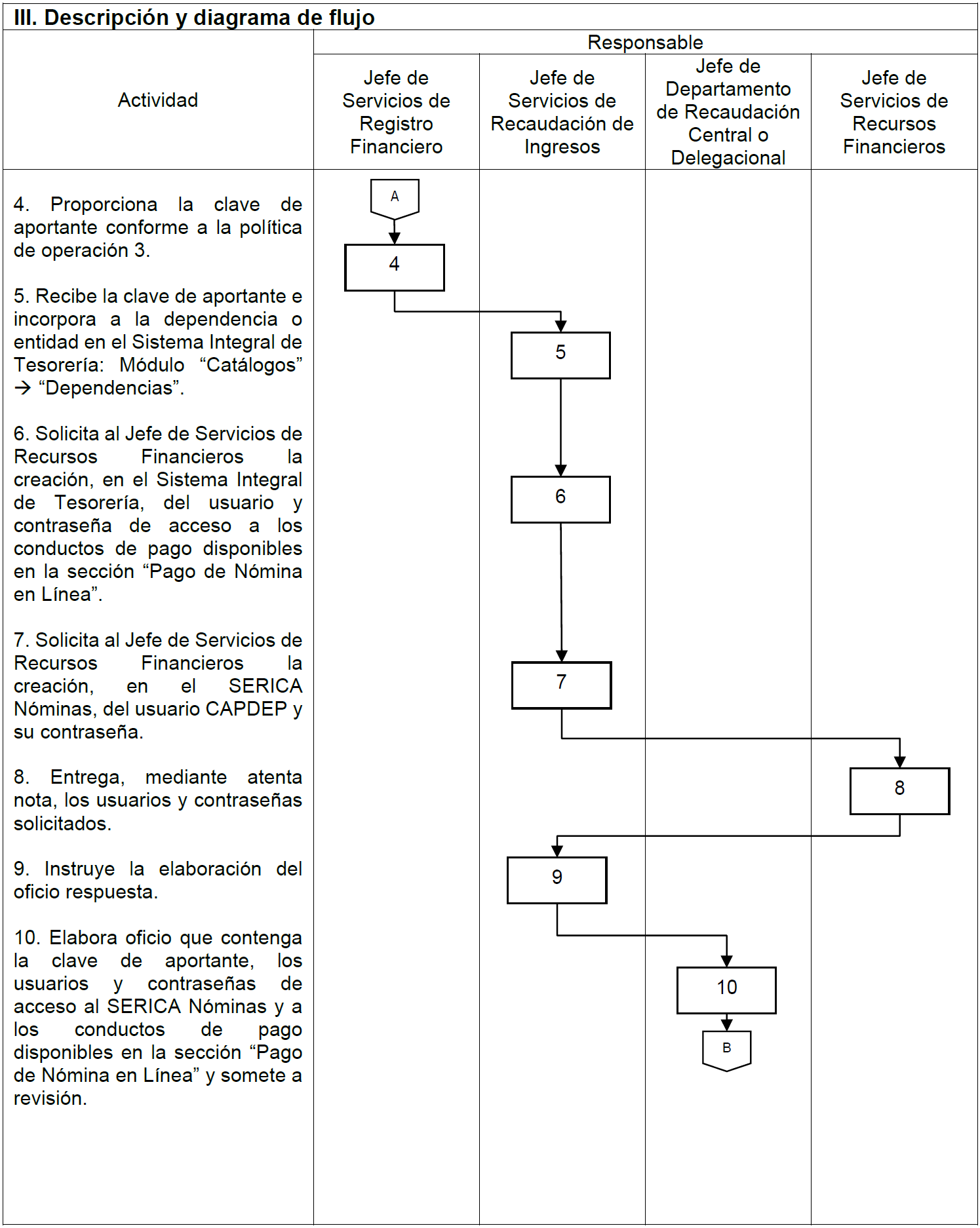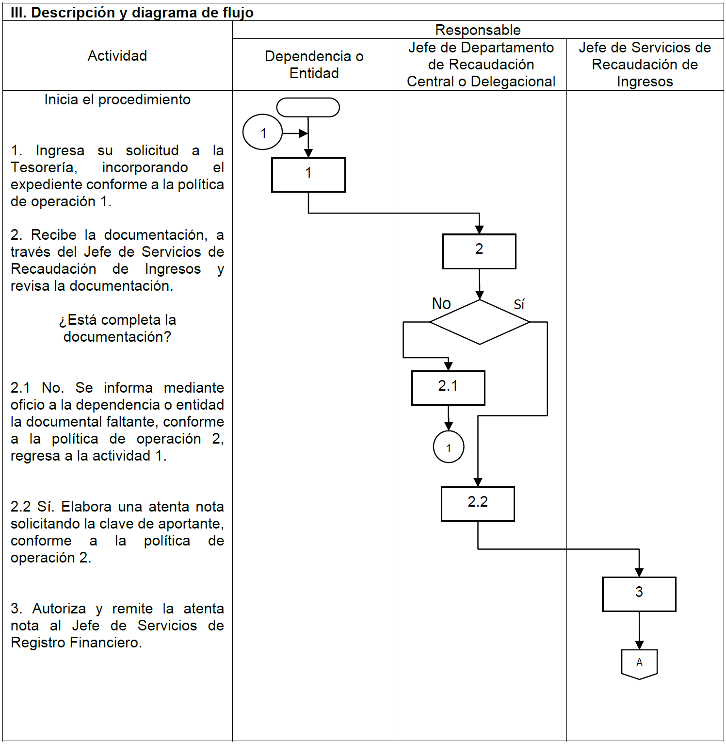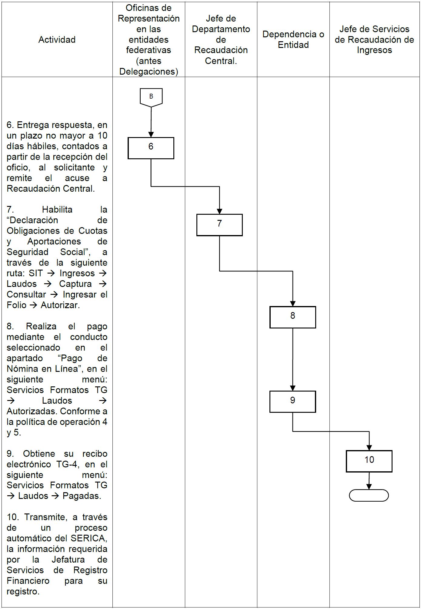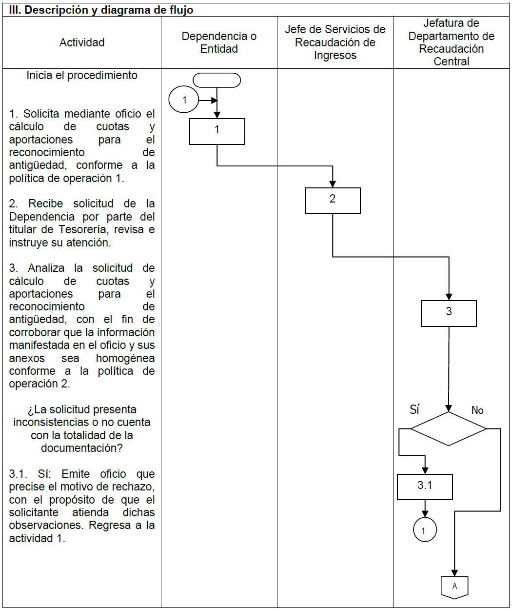 | V. Referencias | Ley del ISSSTE publicada en el Diario Oficial de la Federación, el 31 de marzo de 2007, artículo 26. Estatuto Orgánico del Instituto publicado en el Diario Oficial de la Federación el día 01 de febrero de 2019, artículo 12, fracción III. Manual de Organización General del ISSSTE, publicado en el Diario Oficial de la Federación el día 30 de diciembre de 2010, Tesorería funciones 2 y 17, Jefatura de Servicios de Recaudación de Ingresos funciones 1 y 9; Jefatura de Departamento de Recaudación Central funciones 1 y 11 y Jefatura de Departamento de Recaudación Delegacional funciones 1 y 7. Lineamientos para realizar el entero de cuotas y aportaciones de seguridad social del ISSSTE, publicado en el Diario Oficial de la Federación el día 01 de septiembre de 2021, artículo 4, fracción IV, 33 y 34. |