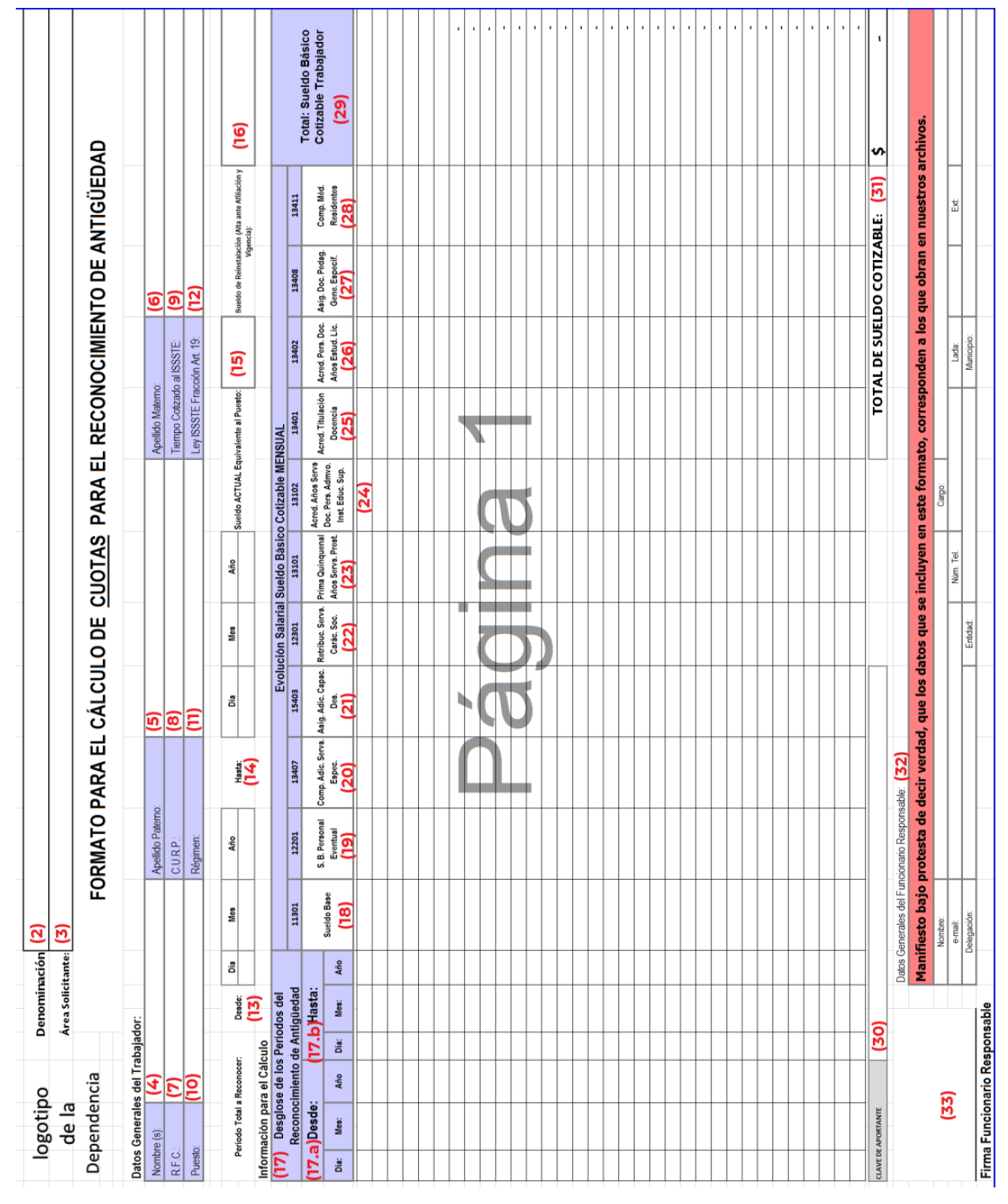 | Anexo 1. Instructivo de llenado del formato para el cálculo de aportaciones para el reconocimiento de antigüedad | Clave del formato: No aplica | ||