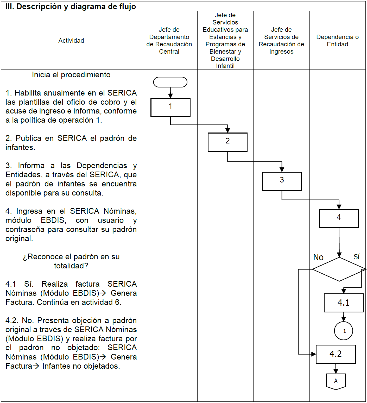 | Factura | Sistema Electrónico de Recaudación de Ingresos de Cuotas y Aportaciones Nóminas | Revisada, Cifras control, Facturada, Enviada a SERICA Pagada en SERICA | 3 años en línea | No aplica | Base de datos histórica |