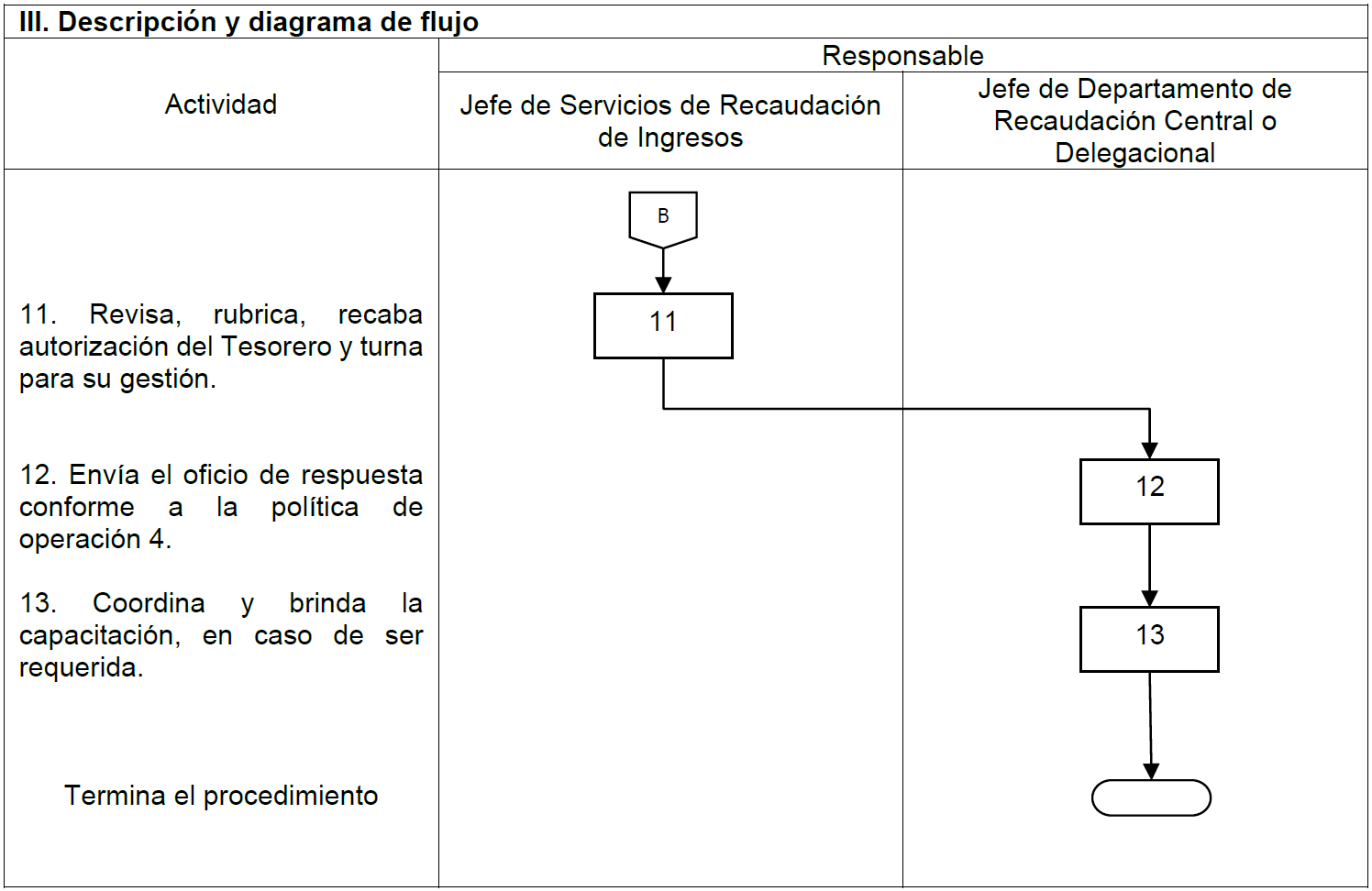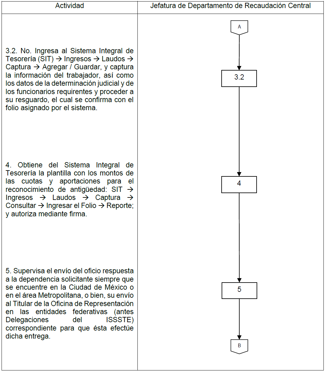 | V. Referencias | Ley del ISSSTE publicada en el Diario Oficial de la Federación, el 31 de marzo de 2007, artículo 21. Estatuto Orgánico del Instituto publicado en el Diario Oficial de la Federación el día 01 de febrero de 2019, artículo 12, fracción III. Manual de Organización General del ISSSTE, publicado en el Diario Oficial de la Federación el día 30 de diciembre de 2010, Tesorería funciones 2 y 17, Jefatura de Servicios de Recaudación de Ingresos funciones 1 y 9; Jefatura de Departamento de Recaudación Central funciones 1 y 11 y Jefatura de Departamento de Recaudación Delegacional funciones 1 y 7. |