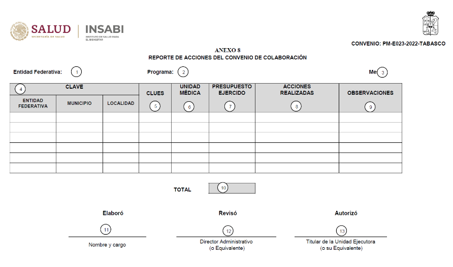 | 7 | TCSSA017432 | Hospital Dr. Arcenio Filigrana Zubieta | Carretera Jonuta-Palizada Km. 1.5 sin número, colonia Jonuta, CP. 86780 del municipio de Jonuta, estado de Tabasco. | $10,000,000.00 |