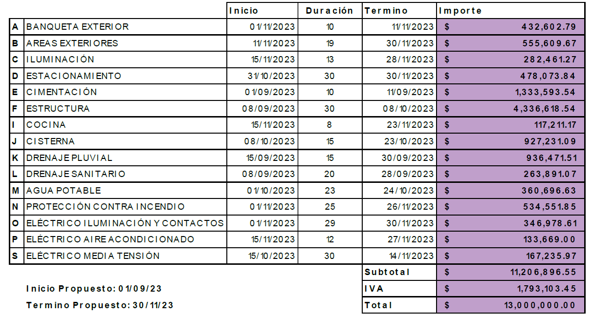 | A | BANQUETA EXTERIOR | | | | $432,602.79 |