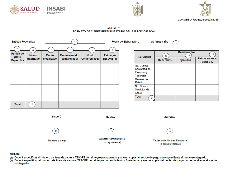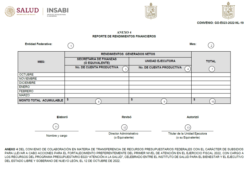 ANEXO 7 DEL CONVENIO DE COLABORACIÓN EN MATERIA DE TRANSFERENCIA DE RECURSOS PRESUPUESTARIOS FEDERALES CON EL CARÁCTER DE SUBSIDIOS PARA LLEVAR A CABO ACCIONES PARA EL FORTALECIMIENTO PREFERENTEMENTE DEL PRIMER NIVEL DE ATENCIÓN EN EL EJERCICIO FISCAL 2022, CON CARGO A LOS RECURSOS DEL PROGRAMA PRESUPUESTARIO E023 "ATENCIÓN A LA SALUD", CELEBRADO ENTRE EL INSTITUTO DE SALUD PARA EL BIENESTAR Y EL EJECUTIVO DEL ESTADO LIBRE Y SOBERANO DE NUEVO LEÓN, EL 12 DE OCTUBRE DE 2022.