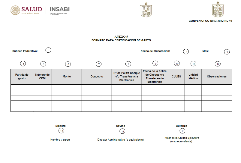 ANEXO 5 DEL CONVENIO DE COLABORACIÓN EN MATERIA DE TRANSFERENCIA DE RECURSOS PRESUPUESTARIOS FEDERALES CON EL CARÁCTER DE SUBSIDIOS PARA LLEVAR A CABO ACCIONES PARA EL FORTALECIMIENTO PREFERENTEMENTE DEL PRIMER NIVEL DE ATENCIÓN EN EL EJERCICIO FISCAL 2022, CON CARGO A LOS RECURSOS DEL PROGRAMA PRESUPUESTARIO E023 "ATENCIÓN A LA SALUD", CELEBRADO ENTRE EL INSTITUTO DE SALUD PARA EL BIENESTAR Y EL EJECUTIVO DEL ESTADO LIBRE Y SOBRANO DE NUEVO LEÓN, EL 12 DE OCTUBRE DE 2022.