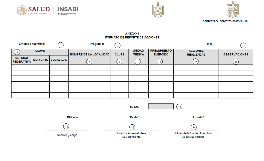 ANEXO 6 DEL CONVENIO DE COLABORACIÓN EN MATERIA DE TRANSFERENCIA DE RECURSOS PRESUPUESTARIOS FEDERALES CON EL CARÁCTER DE SUBSIDIOS PARA LLEVAR A CABO ACCIONES PARA EL FORTALECIMIENTO PREFERENTEMENTE DEL PRIMER NIVEL DE ATENCIÓN EN EL EJERCICIO FISCAL 2022, CON CARGO A LOS RECURSOS DEL PROGRAMA PRESUPUESTARIO E023 "ATENCIÓN A LA SALUD", CELEBRADO ENTRE EL INSTITUTO DE SALUD PARA EL BIENESTAR Y EL EJECUTIVO DEL ESTADO LIBRE Y SOBERANO DE NUEVO LEÓN, EL 12 DE OCTUBRE DE 2022.