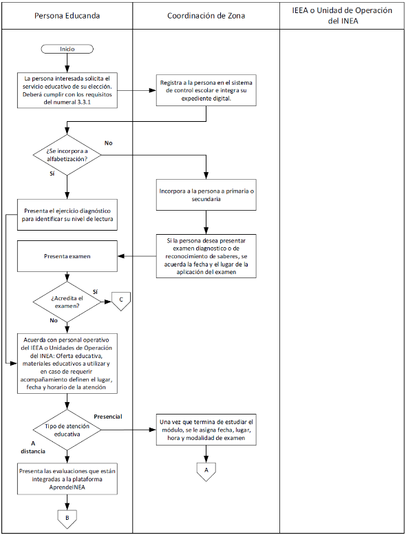 | 7.Calificación del examen de la formación inicial. | Los IEEA, UO y Coordinaciones de Zona. | Oficinas del IEEA y/o UO y Coordinaciones de Zona en el estado de...........................ubicadas en ........................................................................ |