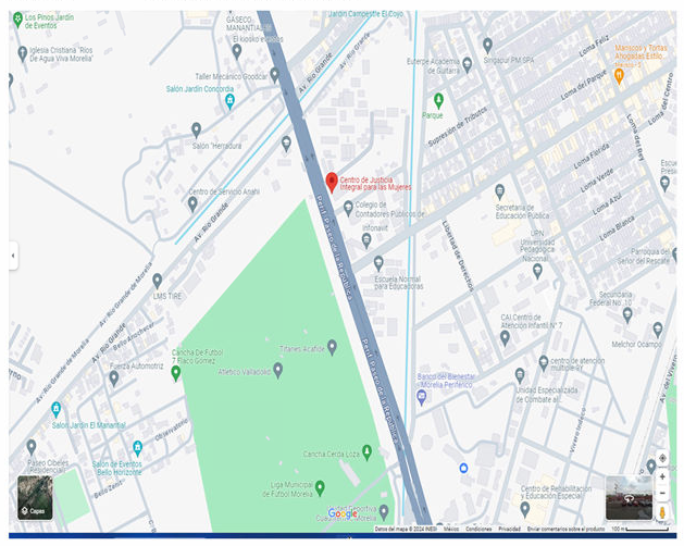 Centro de Justicia Integral para las Mujeres con sede en Morelia Michoacán, ubicado en Periférico Paseo de la República No. 6040, Col. Sentimientos de la Nación, C.P. 58178, Morelia, Michoacán de Ocampo y el Centro de Justicia Integral para las Mujeres Región Uruapan ubicado en Leona Vicario sin número, esquina Cedro, Colonia San Rafael, C.P. 60137, Uruapan, Michoacán.