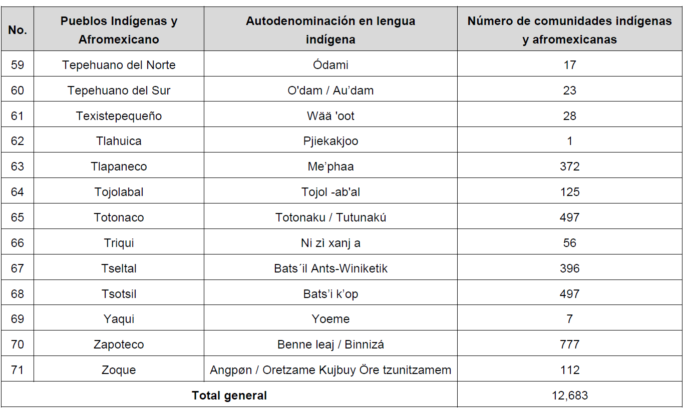 Además, fueron registradas e identificadas 28 comunidades conformadas por personas y familias pertenecientes a más de un pueblo indígena o afromexicano, asentadas en un mismo territorio y con autoridades nombradas a través de sus sistemas normativos, mismas que se identifican como comunidades pluriculturales.