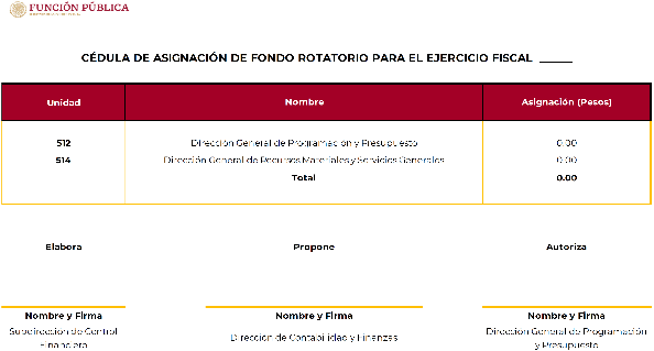 Formato 1. "Cédula de Asignación de Fondo Rotatorio para el Ejercicio Fiscal"