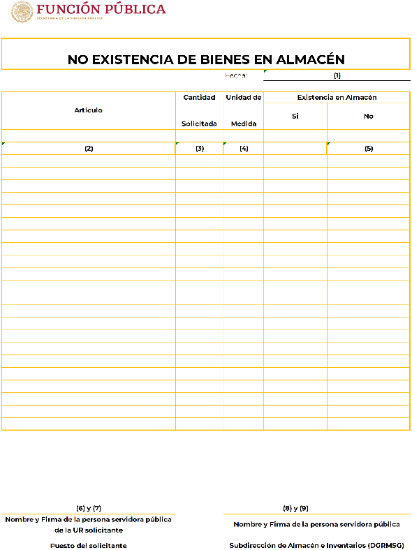 | (1) | Fecha en que solicita la no existencia de bienes en almacén. |