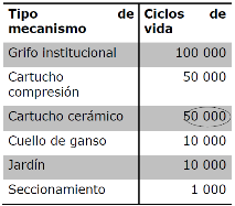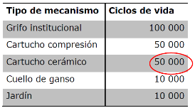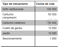 (...) Nota 6: Las pruebas especificadas en este apartado, deben empezarse con agua fría y después cambiar a agua caliente, mientras se mantengan las secuencias especificadas. Dice: "Tabla 7.- Número de ciclos para determinar la vida de un espécimen