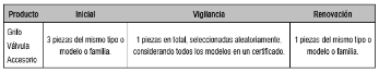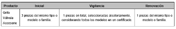 | | 9.3.1 Evaluación mediante pruebas periódicas al producto Para obtener el CCP con vigencia de un año, se deben presentar los documentos indicados en el Apéndice A, y para ello, el muestreo del producto será conforme a lo establecido en el apartado 9.4 de este instrumento normativo. Las muestras deben ser enviadas a un laboratorio de pruebas, para su evaluación. El interesado, recibirá una visita de vigilancia durante la vigencia del certificado por el OCP, como máximo a los seis meses más 20 días naturales contados a partir de haber otorgado la certificación, la cual será programada con una antelación no menor a 15 días hábiles. El muestreo de la visita de vigilancia, para los certificados emitidos por un OCP a un mismo interesado dentro de un intervalo de 15 días hábiles, podrán ser agrupados por familia de productos, para efectos del muestreo de la vigilancia del producto. Para productos que hayan sido autorizados por la CONAGUA con base en el artículo 49 de la Ley, el muestreo será independiente a los que se encuentren dentro de los 15 días mencionados, mismos que serán enviados al laboratorio de pruebas para su evaluación. De los resultados de la vista de vigilancia, el OCP dictaminará mantener, suspender, cancelar o renovar el certificado del producto. Para el caso de renovación el OCP emitirá una carta de cumplimiento una vez que el producto haya sido conforme a la NOM, derivado de la visita de vigilancia. 9.3.2 Evaluación mediante el sistema de control de calidad (SCC) y pruebas periódicas al producto Para obtener el CCP con vigencia de dos años, se debe presentar y demostrar ante el OCP que se ha implementado un SCC, que incluya el producto a evaluar, además, cumplir con lo establecido en la NOM. El SCC, de conformidad con la norma mexicana NMX-CC-9001-IMNC-2008 o la que la sustituya, debe contener: I. Control de los registros de calidad; II. Infraestructura; III. Ambiente de trabajo; IV. Competencia, formación y toma de conciencia; V. Planificación de la realización del producto; VI. Compras; VII. Control de la producción y de la prestación del servicio; VIII. Validación de los procesos de producción y de la prestación del servicio; IX. Identificación y trazabilidad; X. Control de los dispositivos de seguimiento y medición; XI. Seguimiento y medición de los procesos; XII. Seguimiento y medición del producto; XIII. Control del producto no conforme; XIV. Análisis de datos. Todo lo anterior es con relación con los procesos involucrados con la fabricación del producto a certificar. La evaluación del SCC, se realiza de acuerdo con alguna de las siguientes opciones: a) Por un organismo de certificación de SGC acreditado por una entidad de acreditación nacional o; b) Por auditores externos calificados, bajo los lineamientos del propio OCP acreditado y aprobado o; c) Por auditores calificados, del propio OCP acreditado y aprobado. Los auditores del SCC deben estar calificados conforme a la normatividad vigente. El muestreo del producto será conforme a lo establecido en el apartado 9.4 de este instrumento normativo. Las muestras deben ser enviadas a un laboratorio de pruebas, para su evaluación. El interesado recibirá una visita de vigilancia durante la vigencia del certificado por el OCP como máximo a los doce meses más 20 días naturales, contados a partir de haber otorgado la certificación, la cual será programada con una antelación no menor a 15 días hábiles. El muestreo de la visita de vigilancia se extraerá de un lote de productos conforme a lo indicado en el apartado 9.4. El muestreo de la visita de vigilancia para los certificados emitidos por un OCP a un mismo interesado dentro de un intervalo de 15 días hábiles, podrán ser agrupados por familia de productos, para efectos del muestreo de la vigilancia de producto. Para productos que hayan sido autorizados por CONAGUA con base en el artículo 49 de la Ley, el muestreo será independiente a los que se encuentren dentro de los 15 días mencionados, mismos que serán enviados al laboratorio de pruebas para su evaluación. De los resultados de la vigilancia correspondiente, el OCP dictaminará mantener, suspender, cancelar o renovar el certificado del producto. El interesado deberá solicitar con anticipación la renovación de la certificación. 9.3.3 Evaluación mediante el sistema de gestión de calidad (SGC) y pruebas periódicas al producto Para obtener el certificado de conformidad del producto con vigencia de tres años, se debe presentar al OCP los documentos mencionados en el Apéndice A. El muestreo del producto será conforme a lo establecido en el apartado 9.4 de este instrumento normativo. Las muestras deben ser enviadas a un laboratorio de pruebas, para su evaluación. Cuando el interesado no cuente con un SGC certificado o tenga su certificación vencida, queda sujeto a la evaluación de dicho sistema por alguna de las siguientes opciones, basándose en los requisitos que se establecen en la norma mexicana NMX-CC-9001-IMNC-2008 "Sistemas de gestión de la calidad - requisitos", o la que la sustituya: I. Por un organismo de certificación de SGC acreditado por una entidad de acreditación nacional o; II. Por auditores externos calificados, bajo los lineamientos del propio OCP acreditado y aprobado o; III. Por auditores calificados, del propio OCP acreditado y aprobado. Los auditores del SGC deben estar calificados conforme a la normatividad vigente. El OCP corroborará que el SGC incluya la(s) línea(s) de producción del producto a certificar. El interesado, recibirá una visita de vigilancia por el OCP como máximo a los dieciocho meses más 20 días naturales para la fracción I, o doce meses más 20 días naturales para las opciones II y III mencionadas anteriormente, contados a partir de haber otorgado la certificación durante la vigencia del certificado, la cual será programada con una antelación no menor a 15 días hábiles. El muestreo de la vis