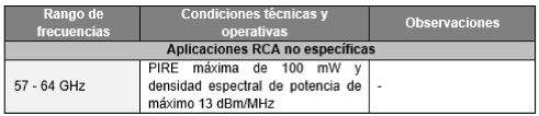 35 Resolución N° 000105, Apartado 3.8.2 Condiciones generales de operación de la banda 57-71 GHz. Consultable en:
