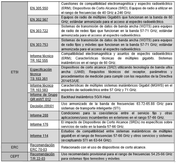 Entorno nacional sobre el uso de la banda 57-64 GHz