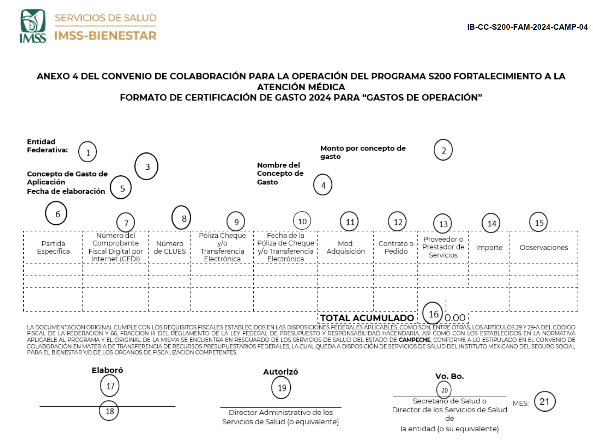 | 6 | Partida Específica de gasto | | 17 | Nombre del Responsable de elaborar la comprobación. |