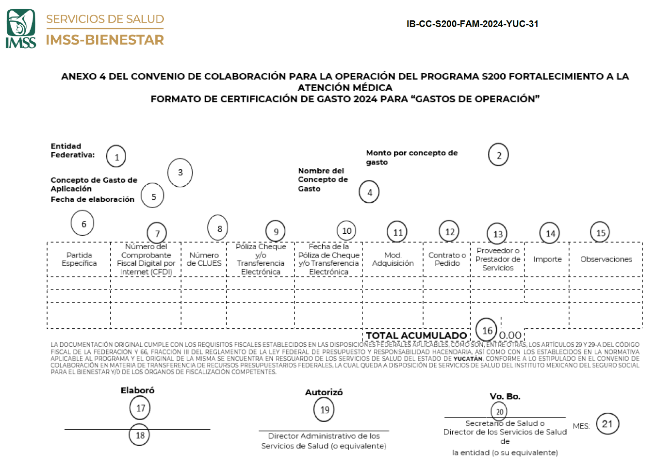 | 4 | Nombre del Concepto de Gasto (de conformidad con el Clasificador por Objeto del Gasto para la APF) | | 15 | Observaciones Generales |