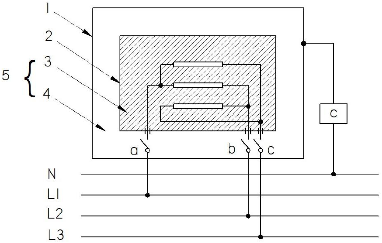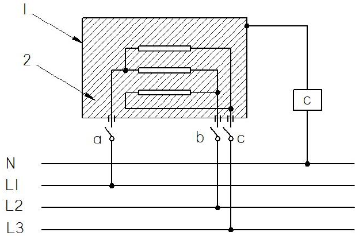 Figura A.7 - Diagrama para la medición de la corriente de fuga a la temperatura de operación de aparatos distintos de Clase II trifásicos