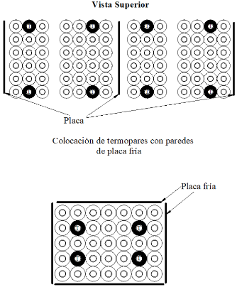 Figura E.15 - Colocación de sensores en enfriador horizontal de placa fría