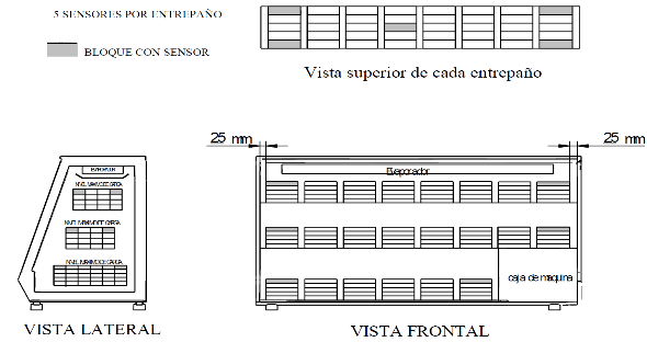 E.5.4 Los bloques con sensor deben ser colocados uno en cada esquina y uno en el centro geométrico de la fila superior, totalizando 5 sensores. Este arreglo se repite para cada una de las parrillas.