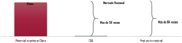 165. Por su parte, las empresas Newell Brands y Newell Rubbermaid indicaron que China posee un potencial exportador de 17.9 veces el CNA y 30.8 veces la producción nacional de México, lo que sugiere una capacidad para inundar el mercado mexicano si se elimina la cuota compensatoria.