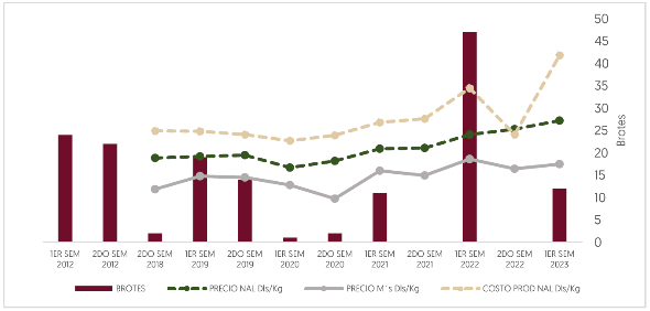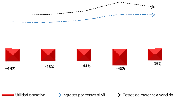 iii. Si bien, los precios de la producción nacional incrementaron, las pérdidas operativas continuaron, a pesar del aumento en mayor medida de los ingresos por ventas en comparación con el crecimiento de los costos de operación.