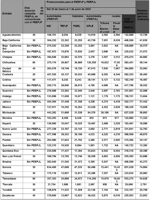 XL. Tiempos de Radio y Televisión. El 13 de enero de 2025, el Consejo General aprobó mediante Acuerdo INE/CG04/2025, los criterios relativos a la distribución del tiempo del Estado en radio y televisión para el PEEPJF 2024-2025, en concurrencia con los Procesos Electorales Locales en los estados de Durango y Veracruz 2024-2025, período ordinario y, en su caso, Procesos Electorales Extraordinarios para la elección de personas juzgadoras de los Poderes Judiciales Locales.