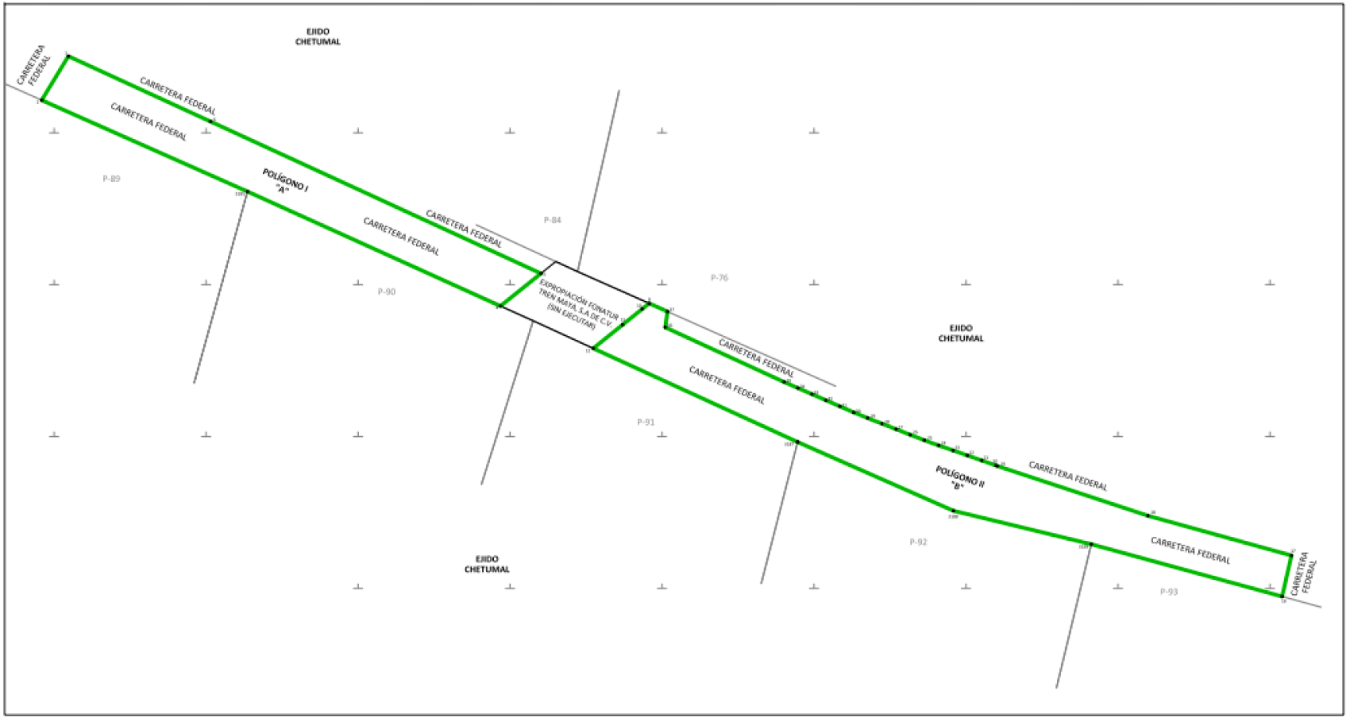 27. Que la entonces Dirección General de Ordenamiento Territorial, hoy Dirección General de Ordenamiento Territorial, hoy Dirección General de Ordenamiento Territorial y Urbano de la Sedatu, el 17 de enero de 2025 emitió opinión técnica condicionada número SOTA/DGOT/003/QROO/FONATUR TM6/001/2025 respecto del procedimiento de expropiación a favor de FONATUR Tren Maya, S.A. de C.V., por una superficie de 07-62-39 ha conformadas por once (XI) polígonos de terreno pertenecientes a los ejidos de X-Hazil y Anexos, en el municipio Felipe Carrillo Puerto; ejido de Bacalar, en el municipio de Bacalar y ejido de Chetumal, en el municipio de Othón P. Blanco, todos en el estado de Quintana Roo";