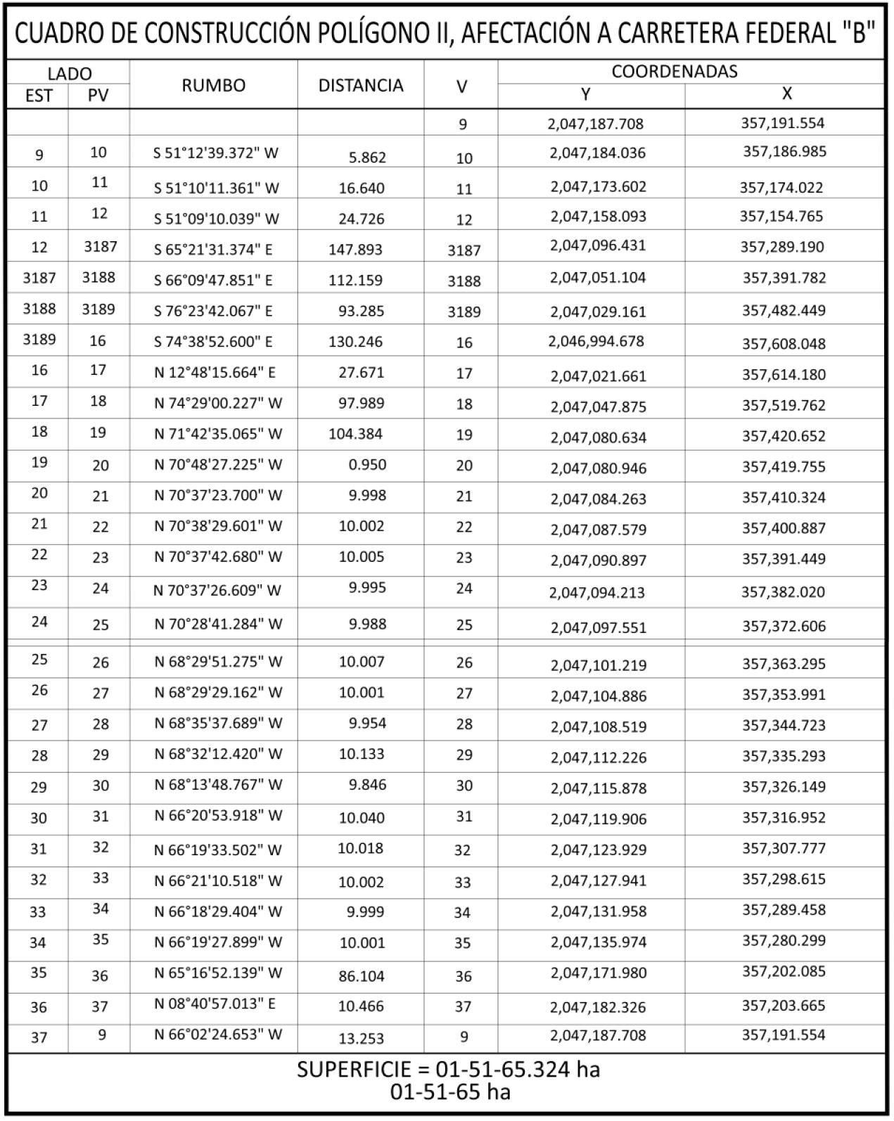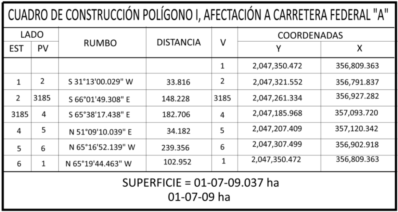 | 1 | Carretera Federal | Temporal | 02-58-74 ha |