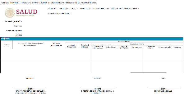 | En la Ciudad de México, a 15 de marzo de 2026, __(#Titular de la UA/OAD)__, (#Representantes Estatales), con el objeto realizar la conciliación respecto de las cantidades de insumos ministrados por la Secretaría de Salud al __(#Entidad Federativa)__ en adelante __"(#Denominación de la Entidad Federativa)"_ , para el __(#Nombre del Programa)__ con motivo de la suscripción del Convenio Específico de Coordinación en Materia de Transferencia de Insumos y Ministración de Recursos Presupuestarios Federales para Realizar Acciones en Materia de Salud Pública en Las Entidades Federativas, Convenio SaNAS, para el ejercicio fiscal 2025 entre el Ejecutivo Federal por conducto de la Secretaría de Salud, en adelante "LA SECRETARÍA" y __"(#Denominación de la Entidad Federativa)"_, hacen constar lo siguiente: ANTECEDENTES 1.- Con fecha _#fechaConvenioEspecífico_, "LA SECRETARÍA" y _"(#Denominación de la Entidad Federativa", celebraron, el Convenio Específico de Coordinación en Materia de Transferencia de Insumos y Ministración de Recursos Presupuestarios Federales para Realizar Acciones en Materia de Salud Pública en Las Entidades Federativas, Convenio SaNAS 2025, con el objeto de ministrar recursos presupuestarios federales y/o insumos federales a _"(#Denominación de la Entidad Federativa, a fin de coordinar su participación con el Ejecutivo Federal, en términos del artículo 9 de la Ley General de Salud, que permitan a _"(#Denominación de la Entidad Federativa" , la adecuada instrumentación, así como fortalecer la integridad de las acciones de Promoción y Prevención de la Salud. 2.- Con fecha _#fechaPrimerModificatorio_, "LA SECRETARÍA" y _"(#Denominación de la Entidad Federativa", celebraron el Convenio Modificatorio al Convenio SaNAS 2025, con el objeto de ajustar los montos de los recursos presupuestarios federales y/o insumos federales ministrados a _"(#Denominación de la Entidad Federativa". 3.- Que toda vez que al 31 de Diciembre de 2025, fecha en la que concluyó la vigencia del Convenio SaNAS 2025, no fue possible realizar la conciliación del total de los insumos ministrados por la "LA SECRETARÍA" a _"(#Denominación de la Entidad Federativa"_,contra los programados en el Convenio SaNAS 2025, y generar, en su caso, la emisión de un Convenio Modificatorio adicional a los señalados el numeral 2 del presente documento, se acuerda: ACUERDOS PRIMERO.-Que las cantidades, precios unitarios e importes definitivos de los insumos ministrados con motivo del cierre de laentrega-recepción de los insumos asignados al _#Nombre del Programa_, al 31 de Diciembre de 2025, ministrados a _"(#Denominación de la Entidad Federativa"_, con motivo de la suscripción del Convenio SaNAS 2025, son las que se muestran en el cuadro de conciliación siguiente: | |