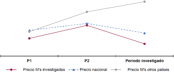 e.     El precio promedio de las importaciones de otros orígenes se ubicó por arriba del precio de las ventas nacionales al mercado interno: 17% en el periodo 2 y 55% en el periodo investigado, salvo en el periodo 1, cuando se ubicó solo 2% por debajo. En relación con el precio de las importaciones investigadas, el precio de las importaciones de otros orígenes fue mayor en porcentajes de 13% en el periodo 1, 21% en el periodo 2 y 90% en el periodo investigado.