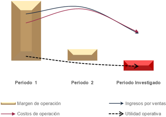 e.     En particular, los resultados operativos disminuyeron 1.5 veces en el periodo investigado, por lo que se observa una reducción en los resultados operativos de 1.1 veces en el periodo analizado. Esta baja dio lugar a una reducción de su margen operativo hasta convertirse en pérdida en el periodo investigado.