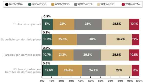 Como territorios, deberían ser espacios de desarrollo integral para las personas que los habitan; sin embargo, el marco institucional, establecido por la reforma constitucional de orientación neoliberal de 1992, facilitó el despojo, la concentración y el deterioro de los recursos naturales en la propiedad social de la tierra. Como resultado, se agravaron los conflictos agrarios a lo largo del país, afectando especialmente a familias y comunidades rurales e indígenas.