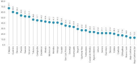 64 INEGI. (2022). Ingreso corriente total promedio trimestral por hogar, por entidad federativa según principales fuentes de ingreso. https://www.inegi.org.mx/app/tabulados/interactivos/?pxq=Hogares_Hogares_11_861f5732-c3db-4614-be03-741f649d605c