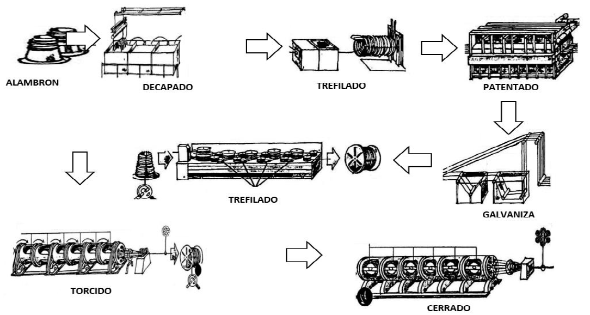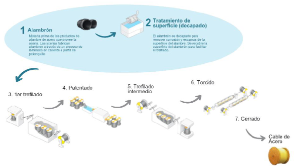 Proceso productivo de cables de acero del producto objeto de investigación