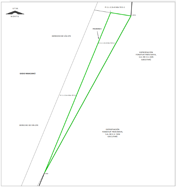 PRIMERO. Se expropia por causa de utilidad pública la superficie de 00-00-55 ha (cincuenta y cinco centiáreas), de terrenos de temporal de uso parcelado del ejido "Maxcanú", municipio de Maxcanú, estado de Yucatán, a favor de Tren Maya, S.A. de C.V., para destinarla a la construcción de obras de infraestructura ferroviaria, operación del proyecto Tren Maya y sus obras complementarias.