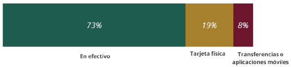 Las razones para preferir el efectivo incluyen: costumbre (46%), solo aceptan efectivo donde compra (15%), desconfianza en la tarjeta (13%), le permite llevar control de gasto (12%) y otra (14%).