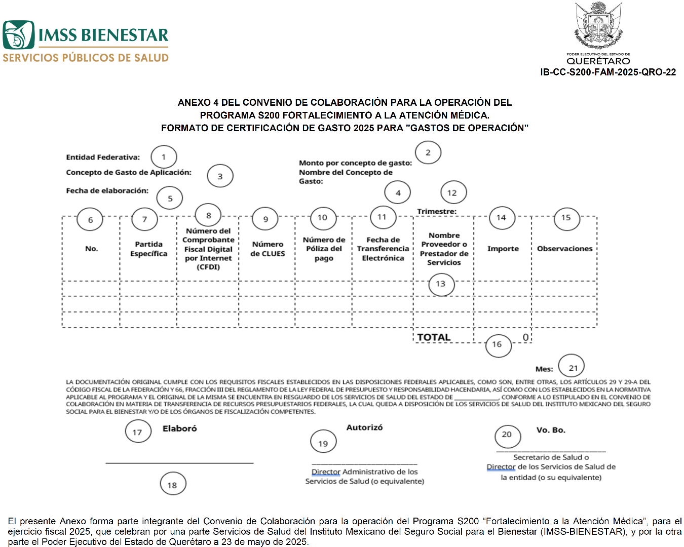 | 5 | Fecha de elaboración del certificado. | | 16 | Total del gasto efectuado por partida específica del trimestre que se reporta. |