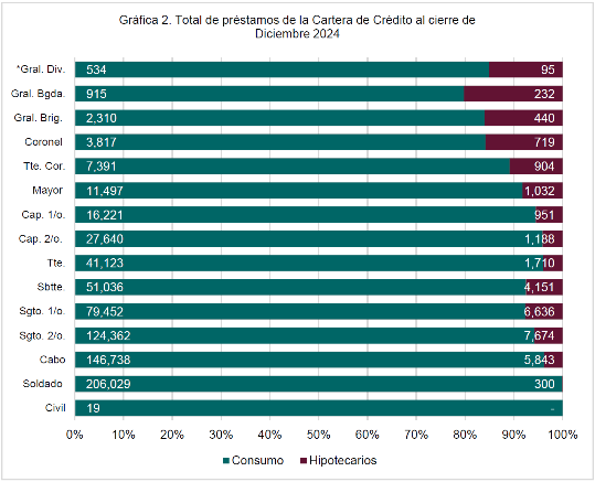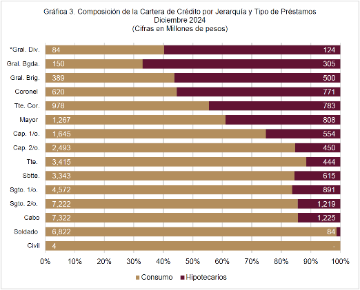 | Cuadro 1. Cartera de Crédito por etapa de riesgo y jerarquías militares Dic. 2024 BANJERCITO (Cifras en Millones de Pesos) | ||||||