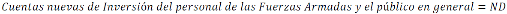 | Nombre | 1.2 Cuentas nuevas de Inversión del personal de las Fuerzas Armadas y el público en general. | ||||||