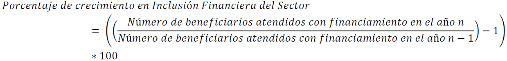 | Nombre | 2.1 Porcentaje de crecimiento en Inclusión Financiera del Sector. | ||||||||||||||||