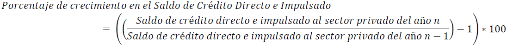 | Definición o descripción | Mide el crecimiento en el Saldo de Crédito directo e impulsado al sector privado. | |||||||||||||