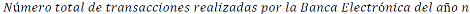 | Definición o descripción | Mide el número total de transacciones realizadas por la Banca Electrónica por ejercicio fiscal. | ||||||||||||||||