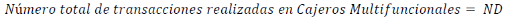 | Definición o descripción | Mide el total de transacciones realizadas en Cajeros Multifuncionales. | ||||||||||||||||