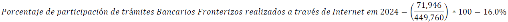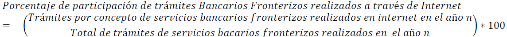 | Nombre | 4.2 Porcentaje de participación de trámites Bancarios Fronterizos realizados a través de Internet. | ||||||||||||||||