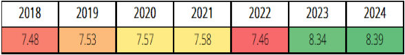 | 7.48 | 7.53 | 7.57 | 7.58 | 7.46 | 8.34 | 8.39 |